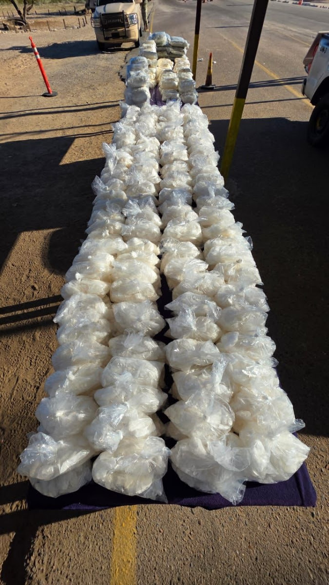 San Luis Río Colorado, Sonora; 15 de enero de 2026.- Como resultado de los trabajos de coordinación y estrategia conjunta de la Mesa Estatal de Seguridad, autoridades federales lograron el aseguramiento de un cargamento con más de 200 kilogramos de metanfetamina, además de fentanilo y marihuana, en San Luis Río Colorado.