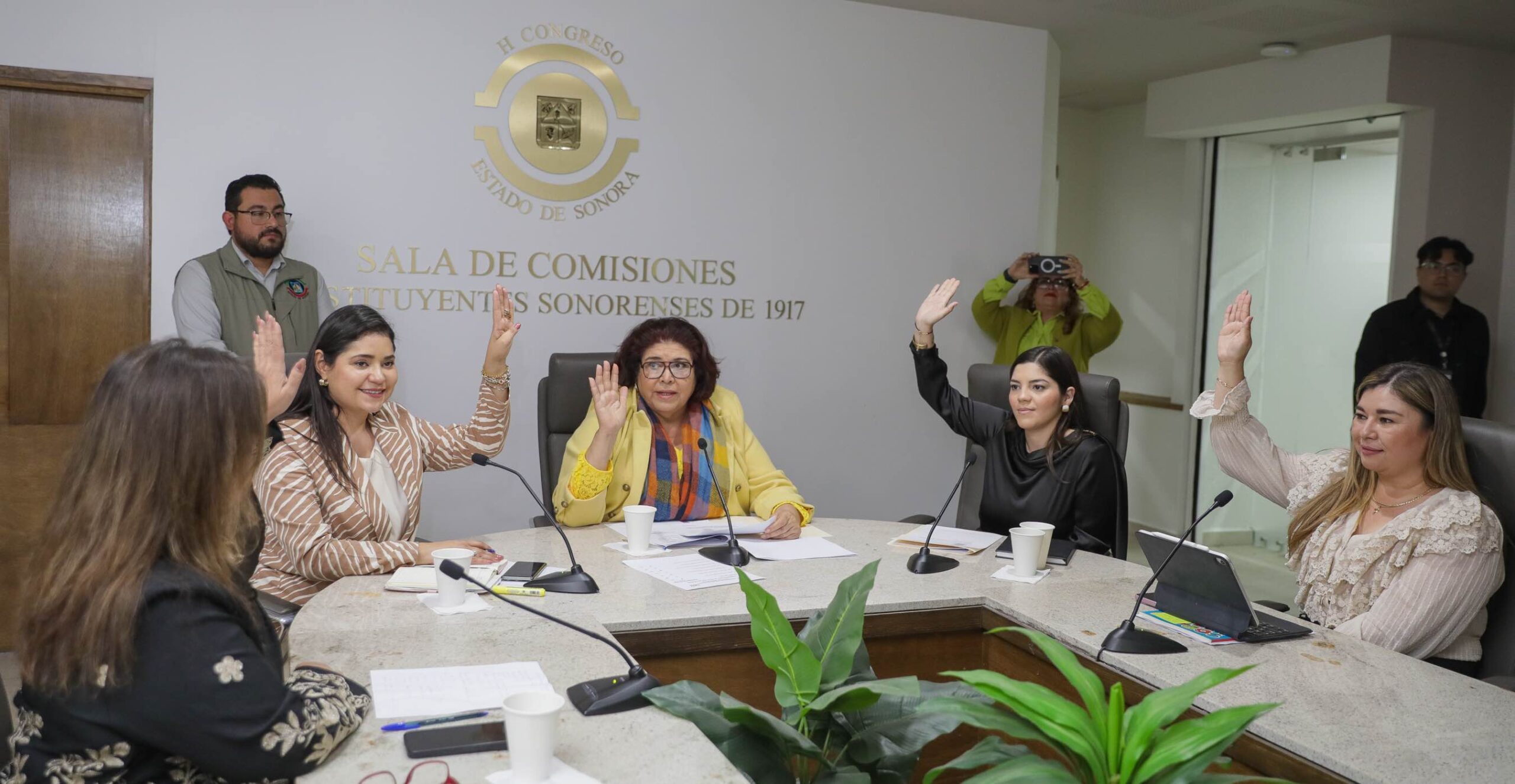 La legisladora Alicia Gaytán Sánchez (Morena), presidenta de la comisión, sometió a consideración de las diputadas Amairany Peña Escalante (PES), Jazmín Gómez Lizárraga (PT), Deni Gastélum Barreras (Morena) y Ana Gabriela Tapia Fonllem (PRD) el documento correspondiente.
